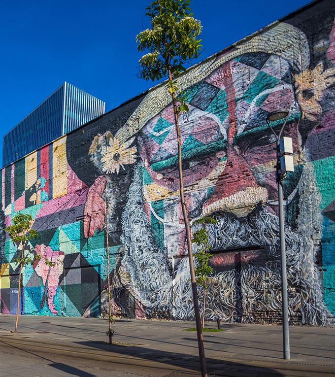 These striking walls continue to evolve and have become a blank canvas for international artists from around the world, including renowned Brazilian mural artist, Eduardo Kobra; contemporary street artist Shepard Fairey, who created the notorious Hope poster for former President Barack Obama; and neo pop artist, Peter Tunney whose large-scale paintings are made from collaged packing materials and newspapers.